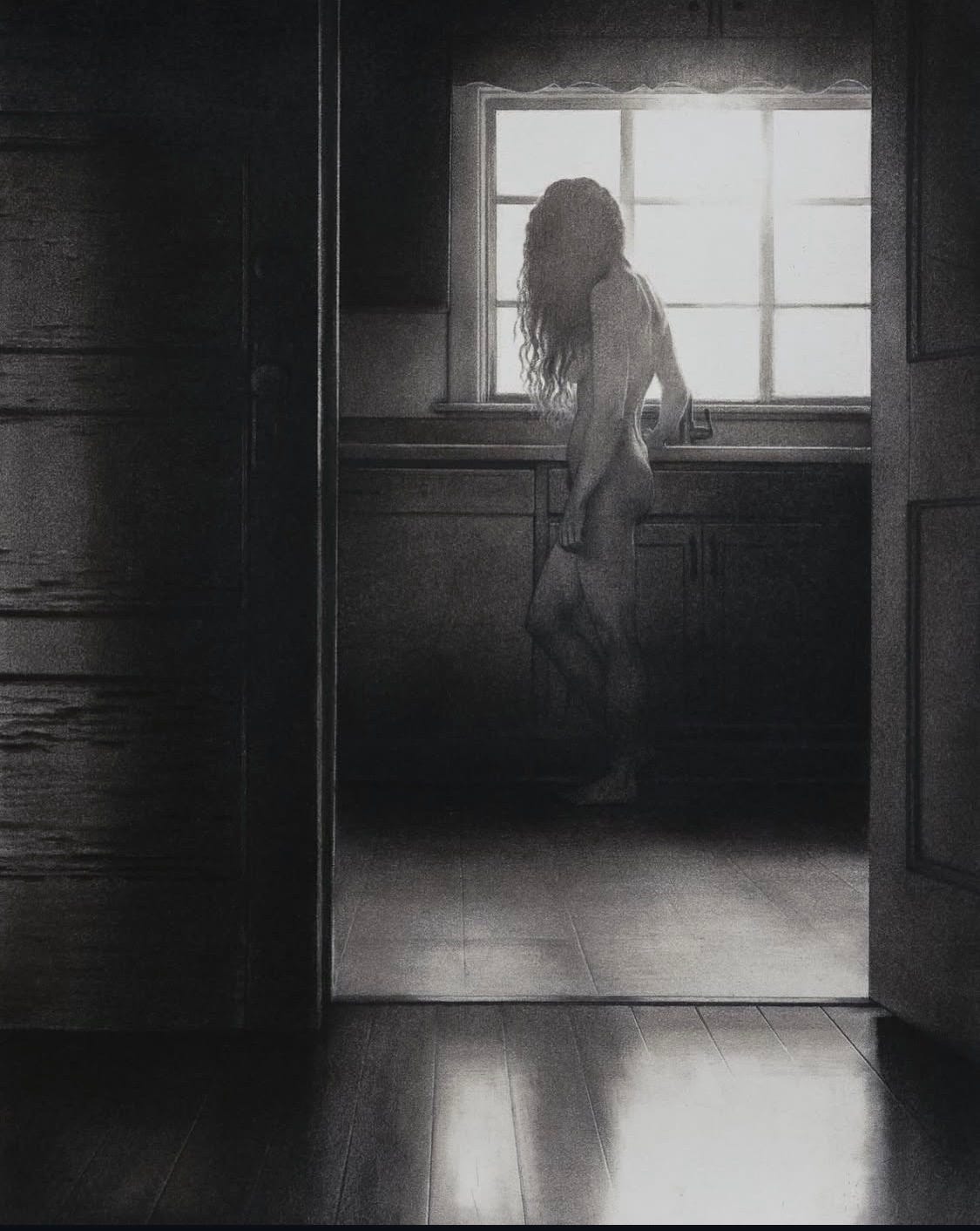 Charcoal, dry rasp of stick against newsprint, a chorus of scratching in a studio smelling of fixative and dust, suspended in the afternoon light, I held the pose— weight shift, hip turned, frozen breath in a room of studying eyes. capturing angles, measuring the geometry of my knee, negative space between arm & rib. a sudden, violent bloom. ignited by stillness seen / unseen, object / subject all at once. wide plank floors, worn smooth by decades of paint spills and pacing. a perfect frame. the betrayal of my body, or perhaps its truest confession— a heavy, slick warmth defying the statue, falling, a dark, wet star marking the wood, while they drew nothing but dry lines.
